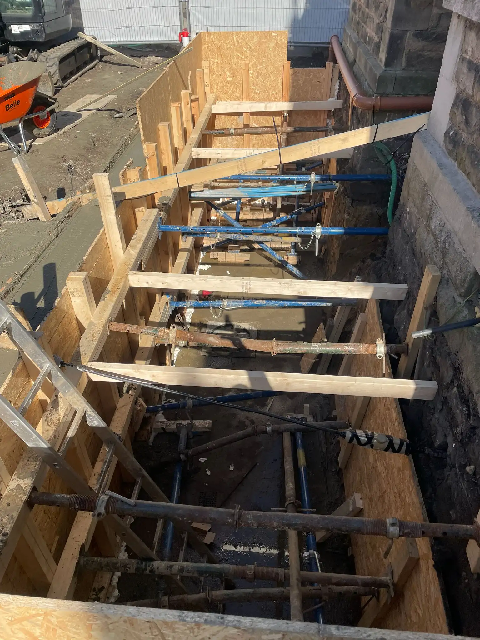 Neighbouring structures are protected through engineered temporary works systems designed to BS 5975-1:2024. This includes controlled excavation sequencing, propping or shoring, and continuous monitoring, overseen by appointed Temporary Works Coordinators and Supervisors.