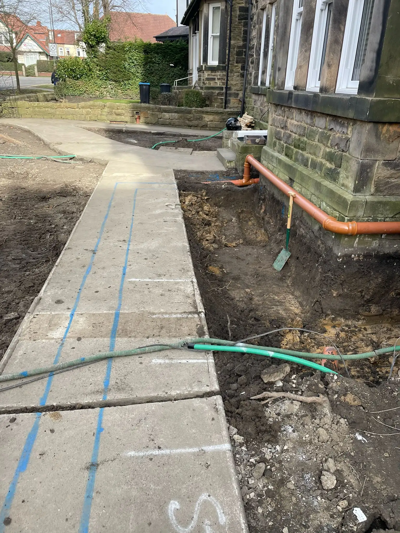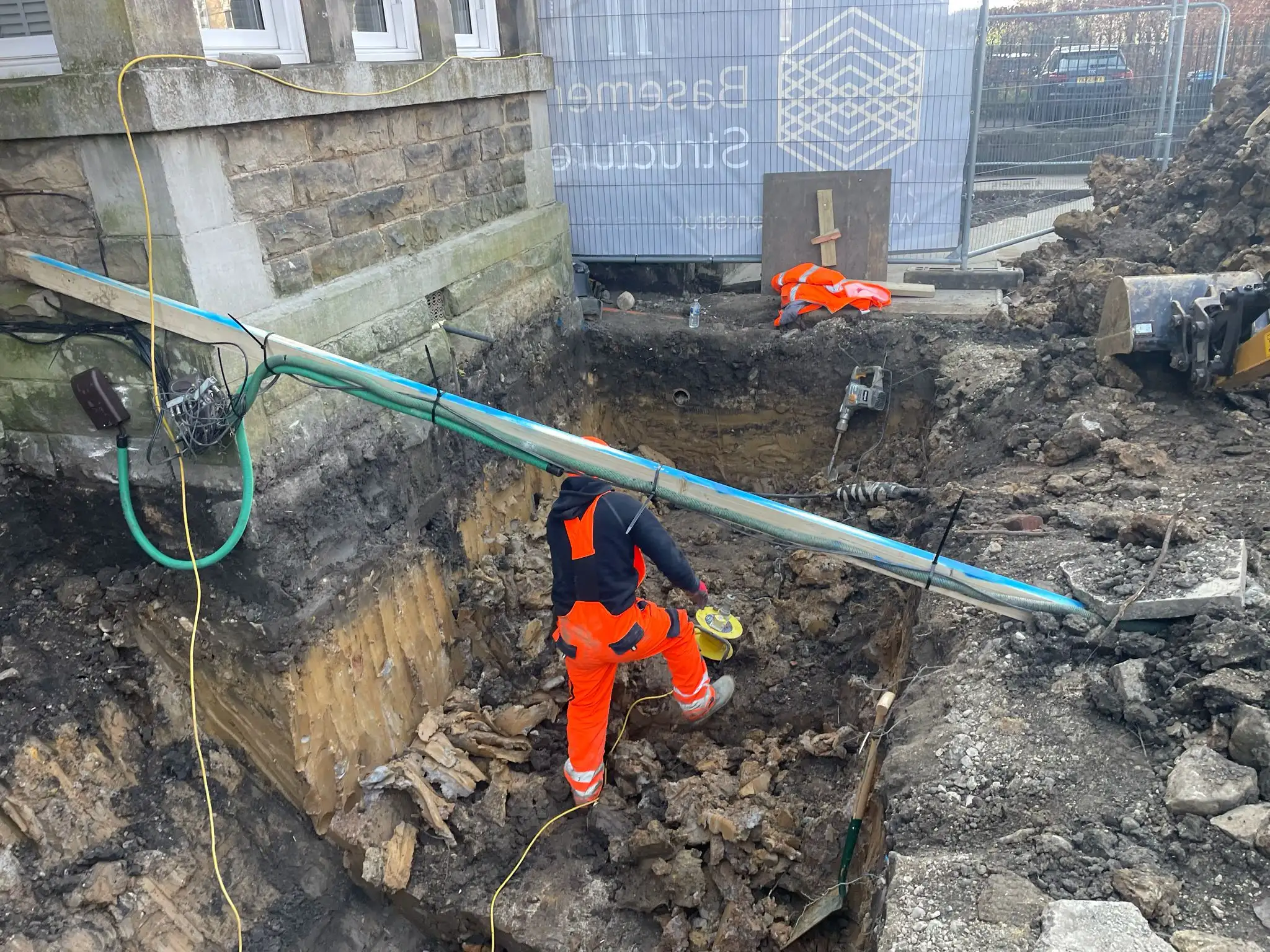 This Harrogate project involved the careful excavation of the front garden and façade zone of a high-value residential property to create additional basement volume and introduce natural daylight via structural lightwells. The works required meticulous planning due to proximity to the public highway, neighbouring properties, and existing foundations.