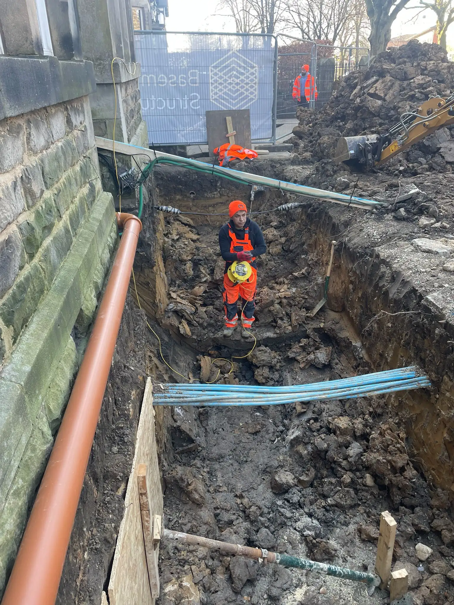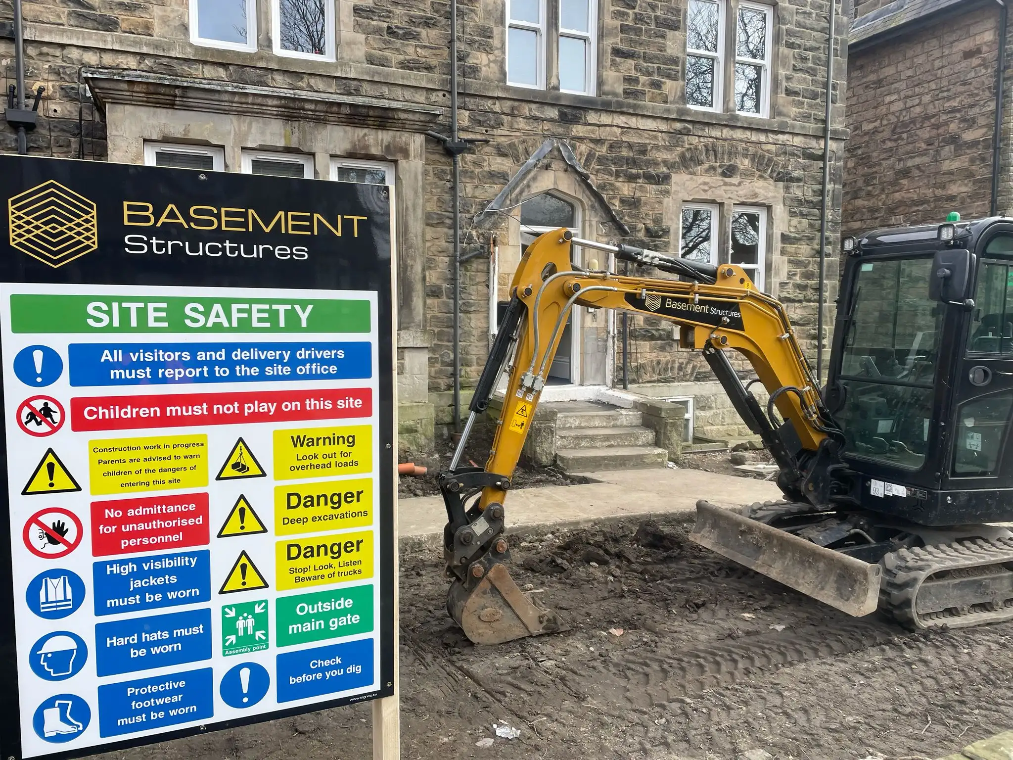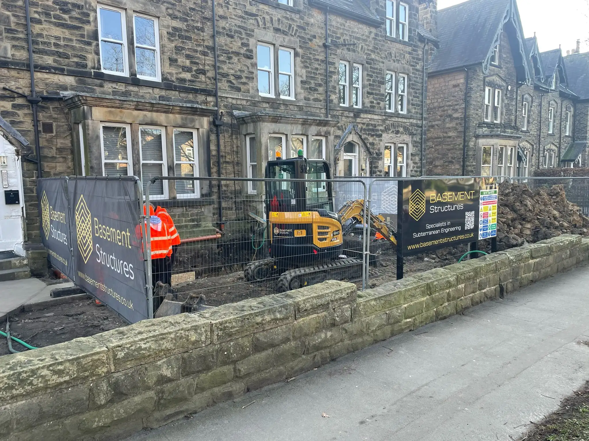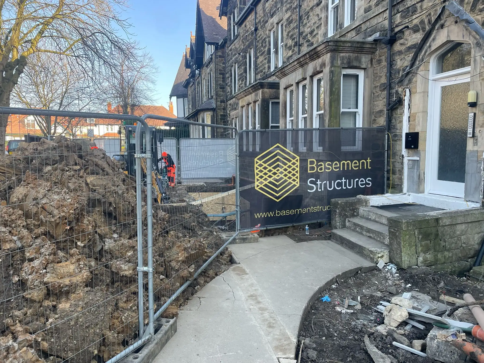 Speak to Basement Structures North about specialist front-of-house excavation, light well construction and structural basement works in Harrogate. We deliver carefully sequenced excavation, engineered retaining walls and compliant temporary works to BS 5975-1:2024, with waterproofing designed to BS 8102:2022 by a named CSSW specialist—ensuring safe delivery, discreet execution and long-term performance.