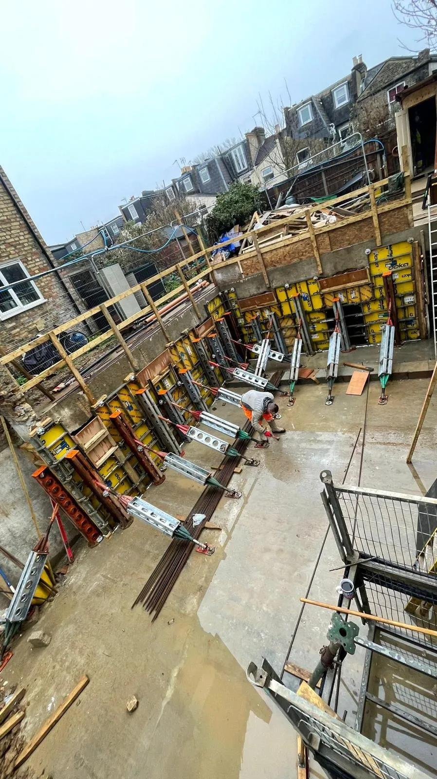 Temporary works are planned and managed using defined procedures, design checks and controlled change. For higher-risk phases such as excavation support and propping, we work to BS 5975-1:2024 procedures with appointed Temporary Works Coordinator (TWC) and Temporary Works Supervisor (TWS) oversight.