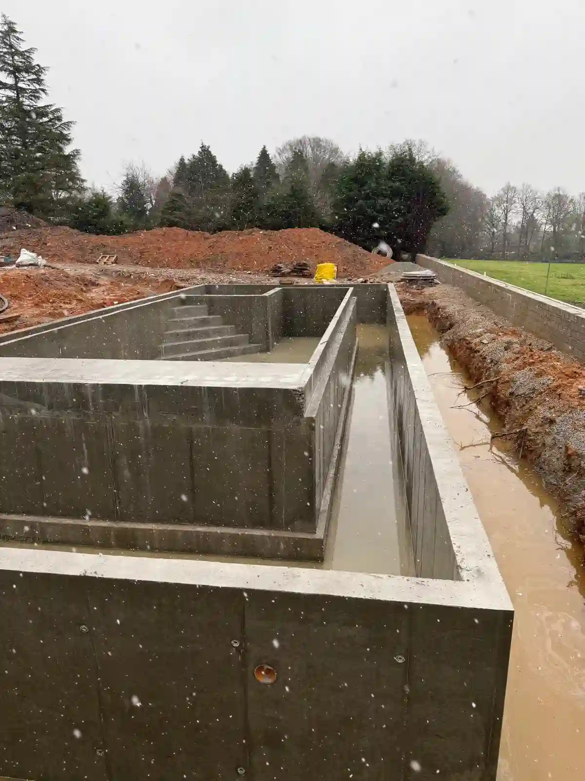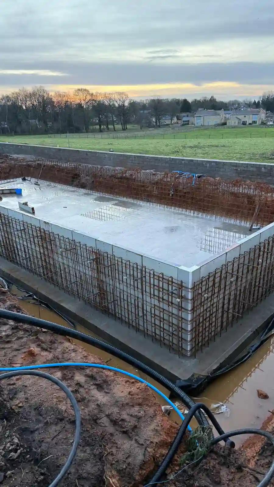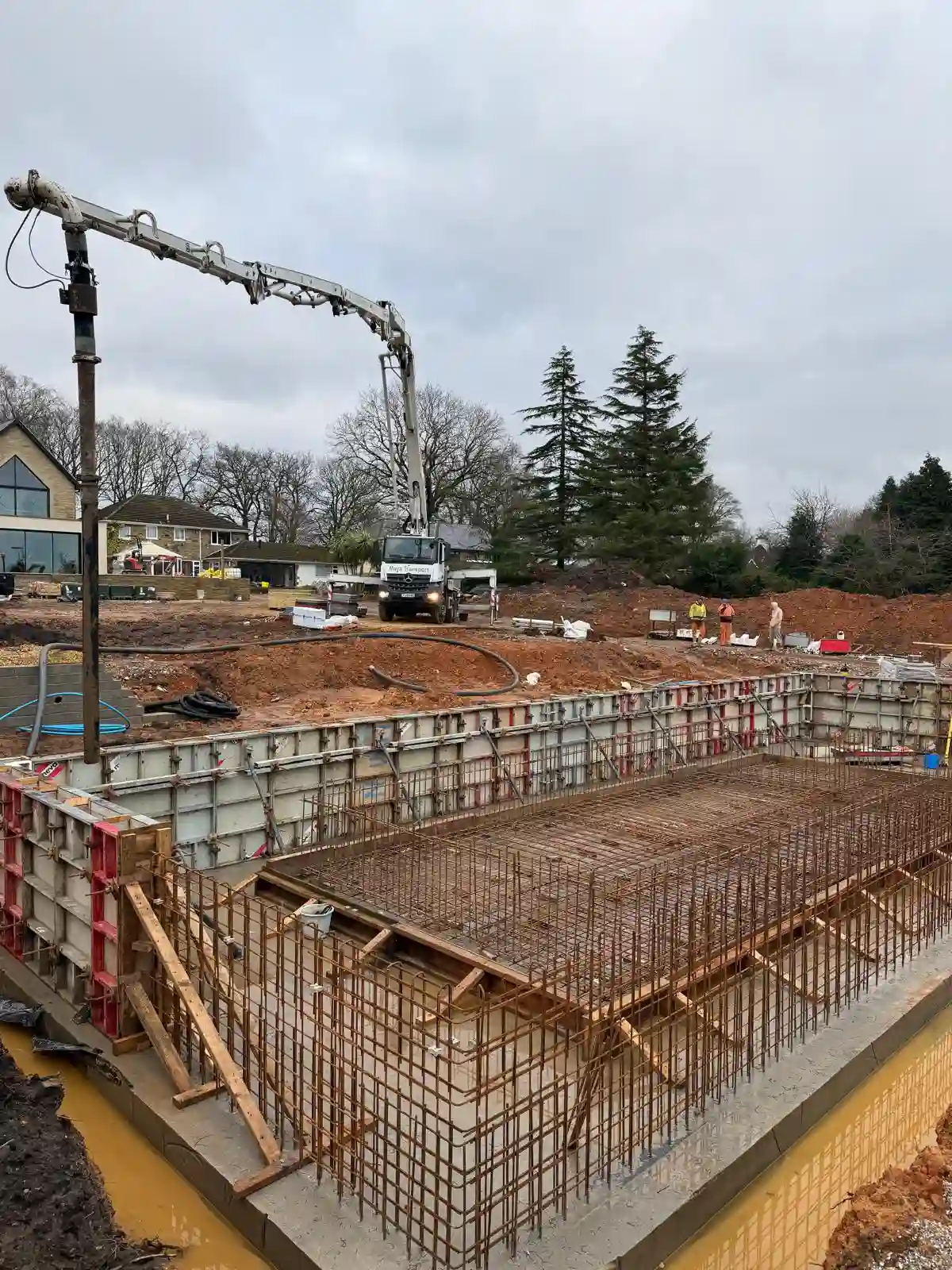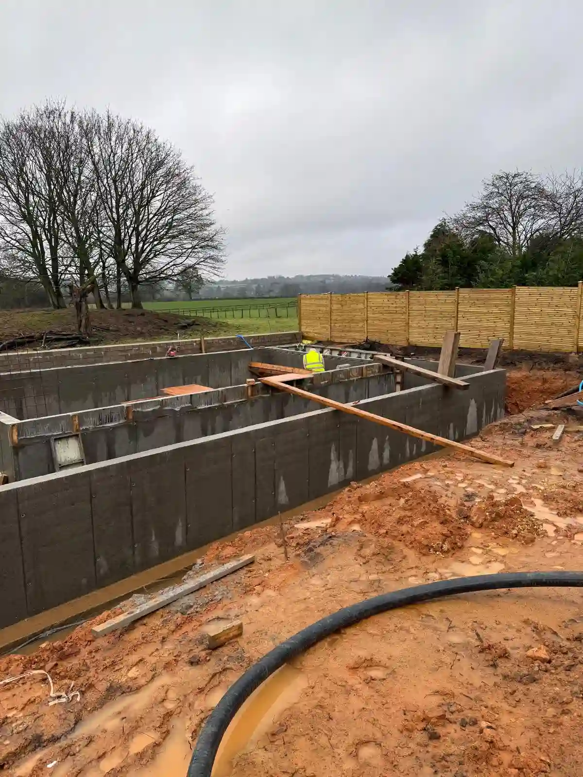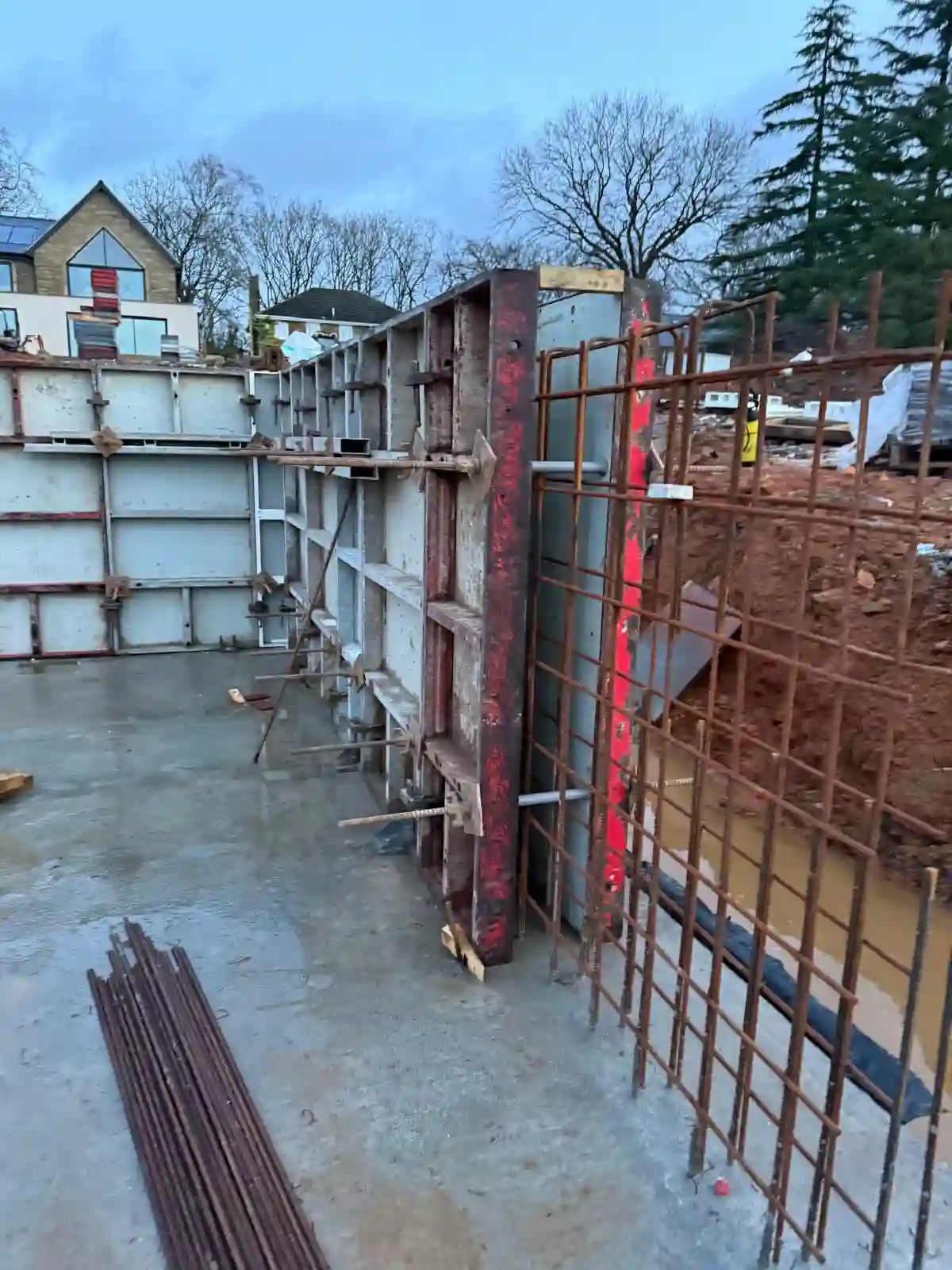 Excavation, reinforced concrete and BS 8102:2022 waterproofing coordination—delivering a pool-ready structure with changing suite and plant access, built from scratch for a large detached home in Wetherby.